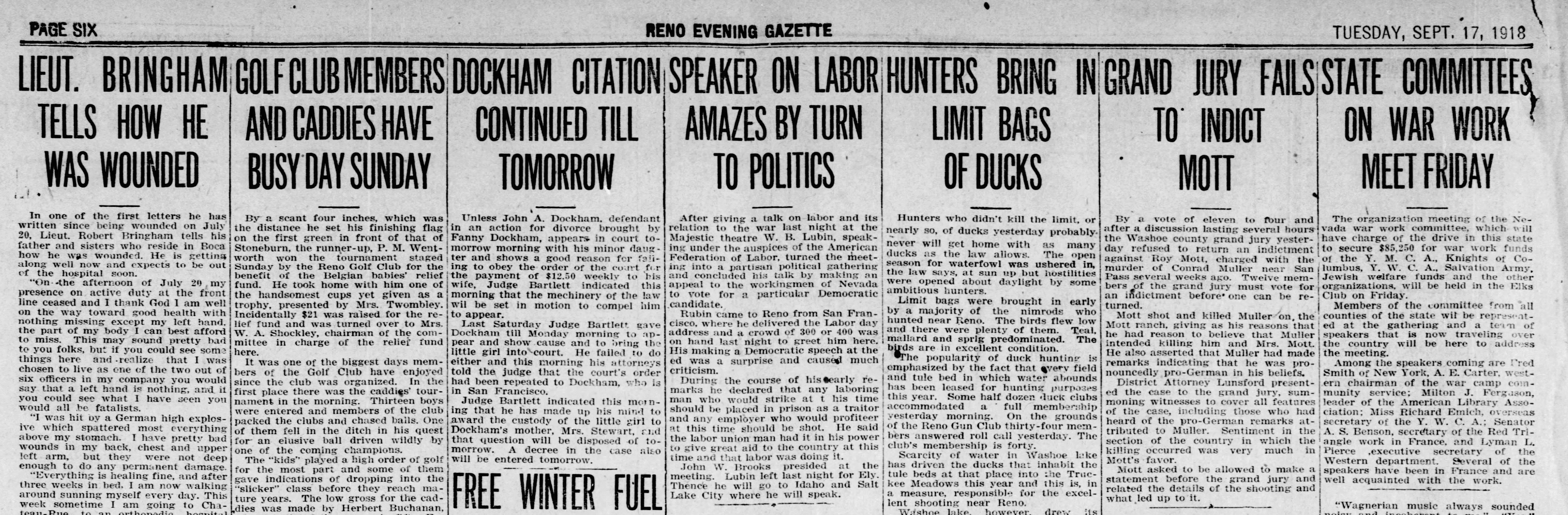(Source for article above: Carson City Daily Appeal. (Volume) (Carson City Nev.) August 26, 1918)